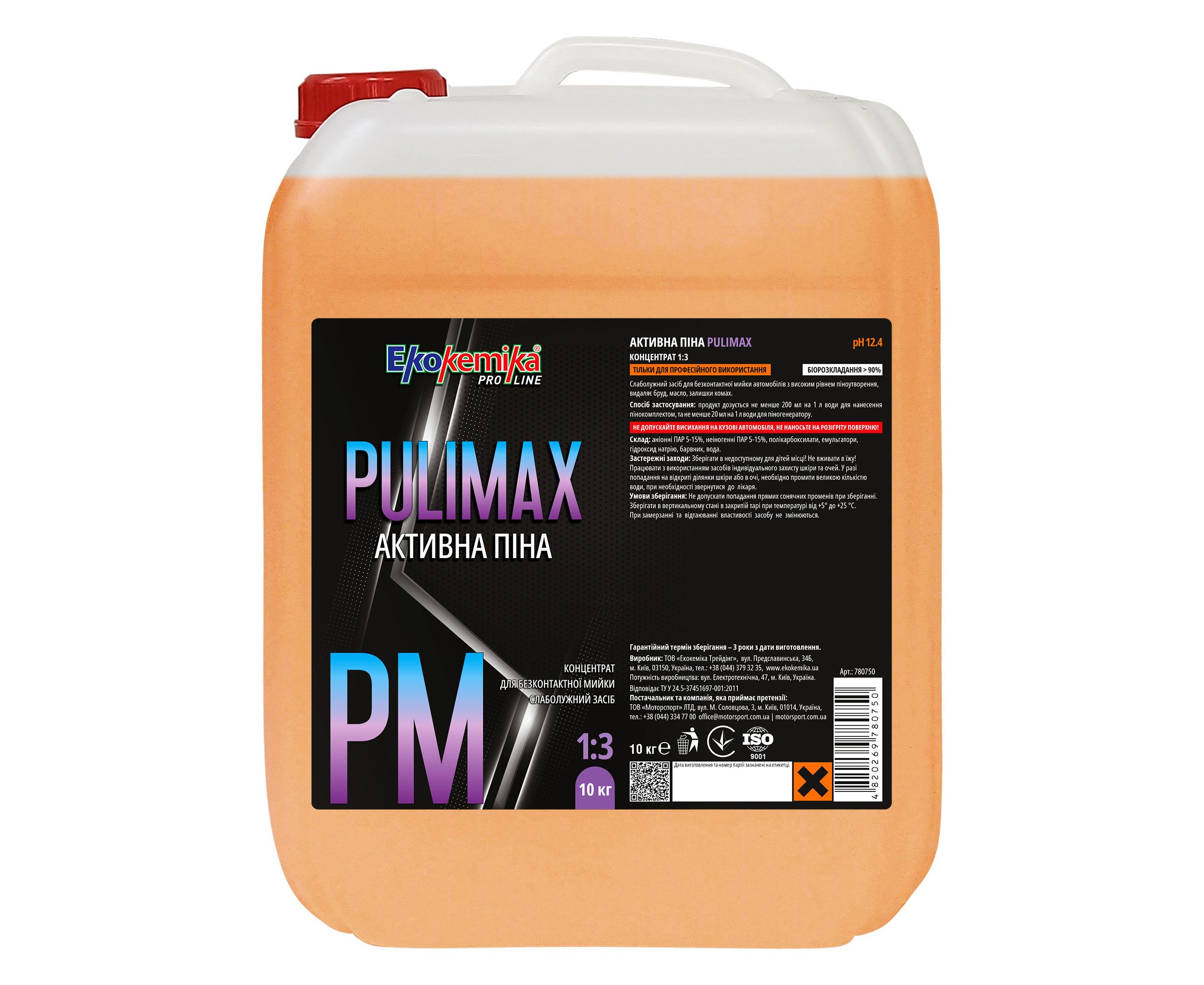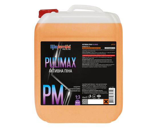 Активна піна 10 л Ekokemika Pro Line PULIMAX 1:3 (780750) — слаболужний засіб для безконтактної мийки автомобілів з високим рівнем піноутворення, видаляє бруд, масло, залишки комах.