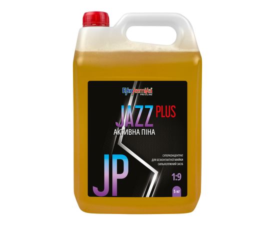 Активна піна 5 кг Ekokemika Pro Line JAZZ PLUS 1:9 (780088) - преміальний засіб для безконтактної мийки грузових та легкових автомобілів з високим рівнем піноутворення.  Сучасна композиція поверхнево-активних речовин у поєднанні з високим пінним ефектом дозволяють легко видаляти дорожню статичну плівку та стійкі органічні забруднення. Ефективно працює під час роботи з водою високої жорсткості. При рекомендованих робочих концентраціях і умовах застосування не пошкоджує алюмінієві, гумові та хромовані деталі кузова.